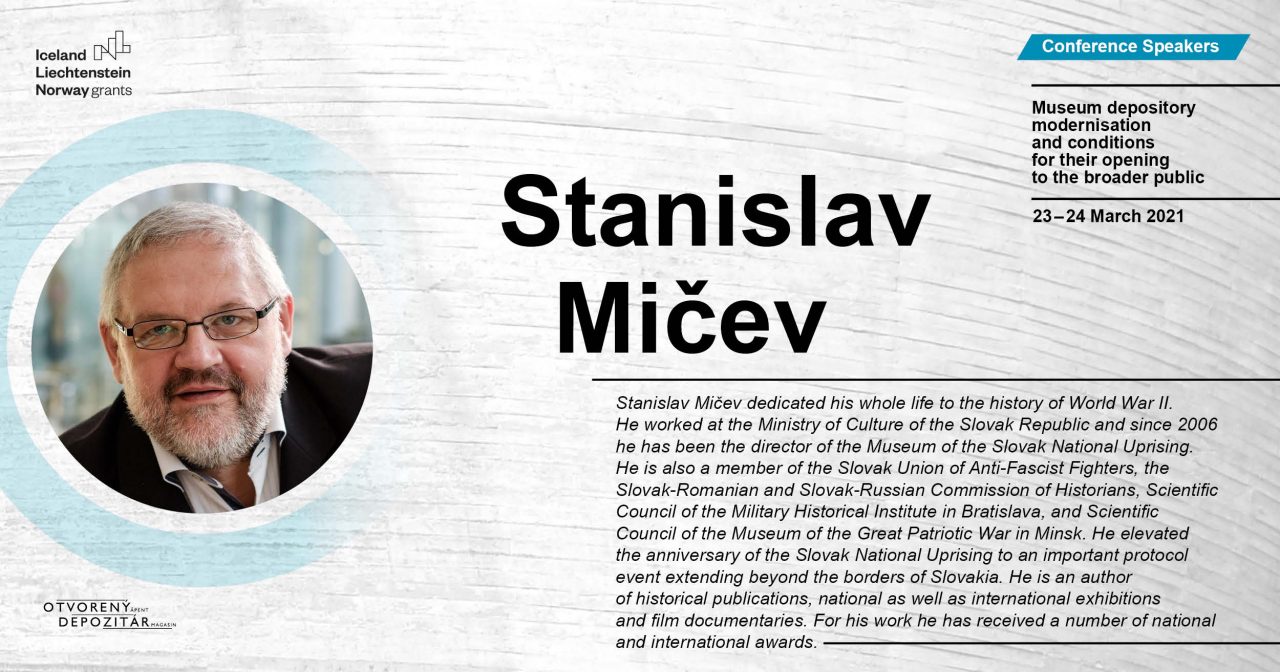 The introductory conference for the project entitled “Museum depository modernisation and conditions for their opening to the broader public” took place online on 23 – 24 March 2021. Apart from the representatives of the Museum of the Slovak National Uprising in Banská Bystrica, the conference had a wide range of participatory contributions from representatives of other institutions: Múzeum Stará Ľubovňa (repr. Dalibor Mikulík) and Slovenské technické múzeum in Košice in Slovakia (repr. Zuzala Šullová); and also from foreign institutions: The Narvik War and Peace Centre in Norway (repr. Eystein Markusson and Ulf Eirik Torgersen) and the Warsaw Rising Museum in Poland (repr. Joanna Lang).